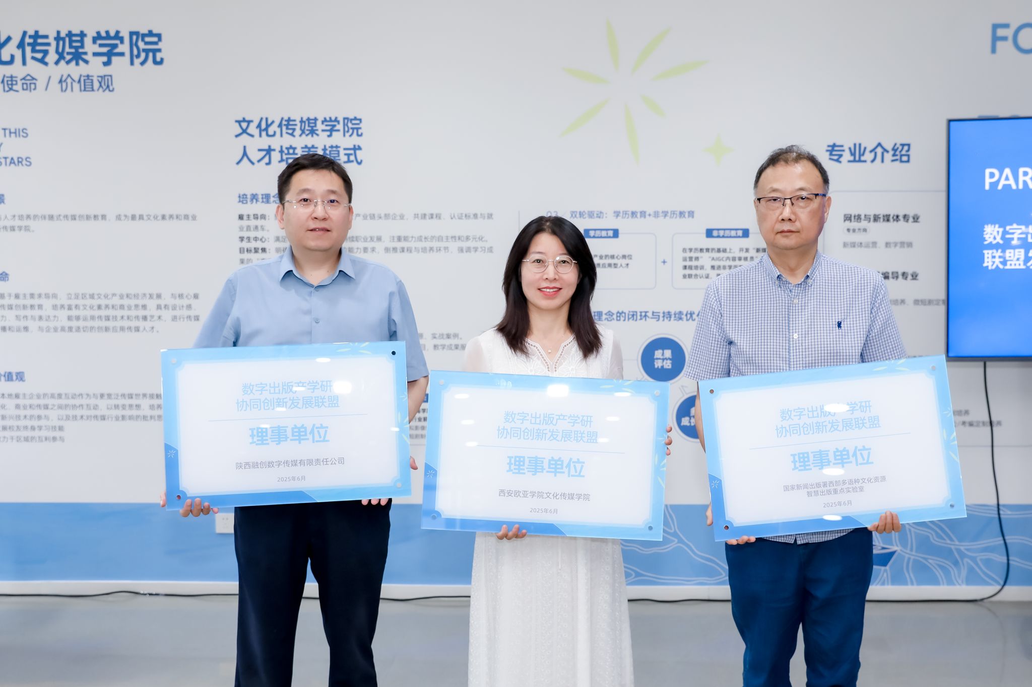 文化传媒学院联合国家新闻出版署西部多语种文化资源智慧出版重点实验室、陕西融创数字传媒有限责任公司,共同发布“数字出版产学研协同创新发展联盟”,致力于推动行业资源整合与技术成果转化,实现课程内容与企业技术需求的精准对接,用技术赋能学生的未来。