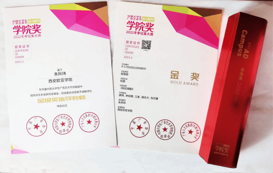 20级广播电视编导专业学生江姜、张艺馨、鄢永力、薛玥、申田理作品《轻松潮能》获得了2023年(春)全国大学生广告艺术节学院奖金奖;