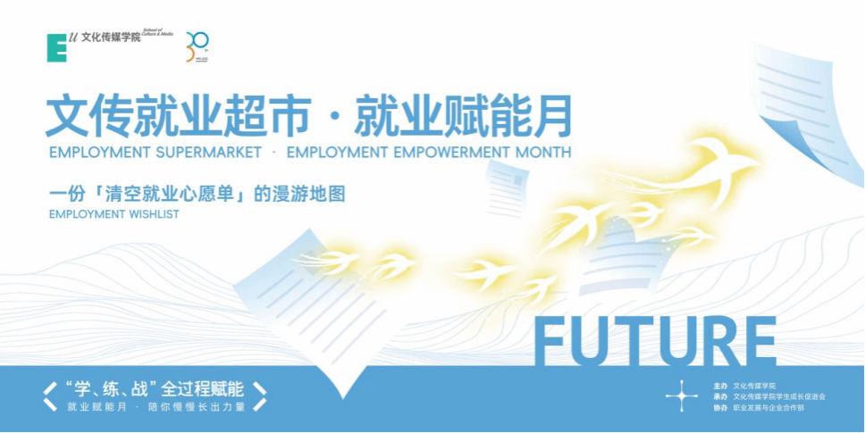 在文化传媒学院,职业发展从不只是一门课程,更是一场从入学到毕业的全程陪伴。分院倾力打造了“以企业为导向,以学生为中心”为核心理念的开放式职业发展平台,致力于打破校园与行业的壁垒,汇聚各方优质资源,并与行业伙伴深度联动,只为让每位学子都能与未来无缝衔接。