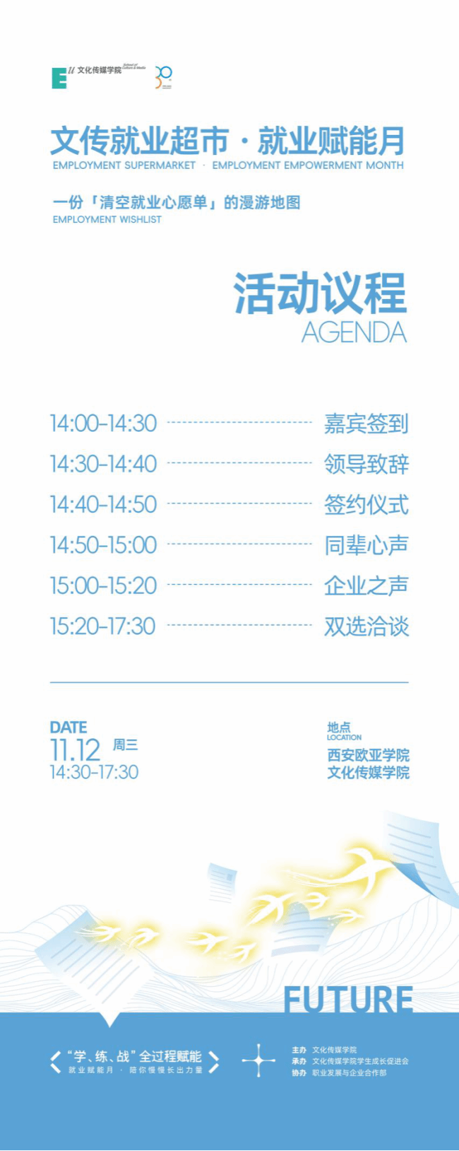这不是一场传统的双选会,而是一次校企深度携手、学生全程赋能的就业新体验。本次“就业超市”汇聚600+优质岗位,覆盖文化传媒、互联网、新媒体、内容创意等多个领域。在这里,你可直面企业、洞察行业,更有机会现场锁定实习或正式Offer,开启属于你的职业新篇章。