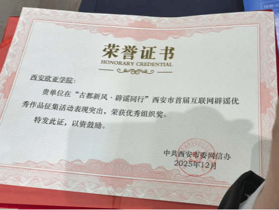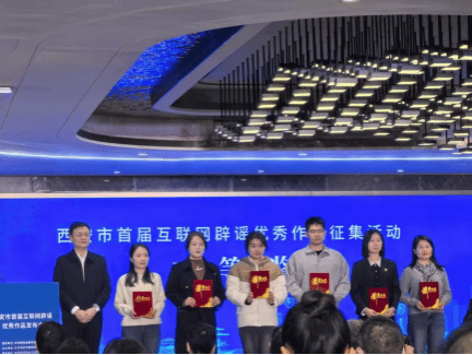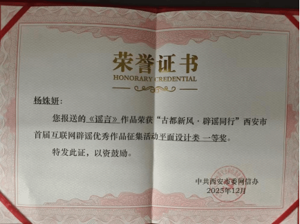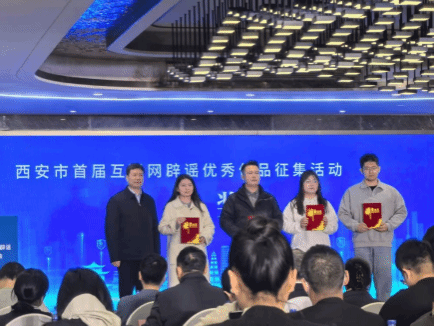 近日,西安市委网信办主办的“古都新风·辟谣同行”——西安市首届互联网辟谣优秀作品发布会圆满落幕。我院2024级网络与新媒体专业学生杨姝妍、滕晓蝶分别荣获一、二等奖,杨姝妍同学受邀在会上进行创作经验分享。同时,我院因组织有力、成果丰硕,荣获优秀组织奖!这份亮眼成绩,既是学生专业能力的生动展现,更是《传播法规与伦理》课程践行项目制学习、深化“课赛融合”教学改革的成功实践。