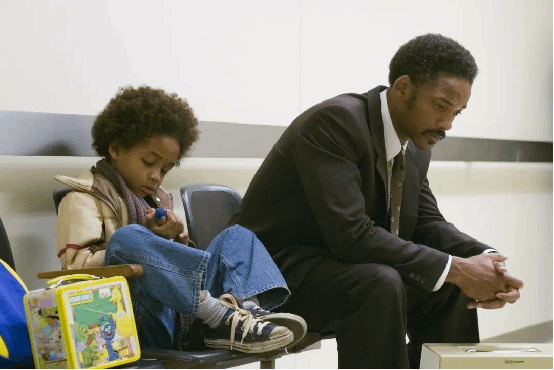 影片的原型克里斯·加德纳,曾是一个靠卖骨密度仪为生的推销员,妻子因贫困离开,他和儿子一度流落街头。但他没有被命运打倒,凭借对数字的敏感和不懈的努力,在证券公司的实习中脱颖而出,最终成为知名的投资专家。这种“小人物逆袭”的叙事之所以动人,在于它的真实——没有主角光环,只有无数个深夜的苦读、被拒绝的冷眼和为了生存的奔波。正如克里斯所说:“别让别人告诉你,你成不了才。”这句话不仅是对儿子的鼓励,更是对每个在困境中挣扎的人的呐喊。