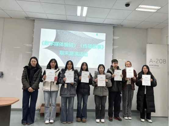 汇报结束后,课程组为优秀团队及个人颁发了奖项。这份荣誉是对同学们将叙事思维与技术能力深度融合、最终产出完整项目成果的充分肯定。当课程联动成为常态,当项目制教学深入课堂,我们的教学生态正在悄然发生变化。在这里,知识与实践相互交融,创意与技术彼此赋能。