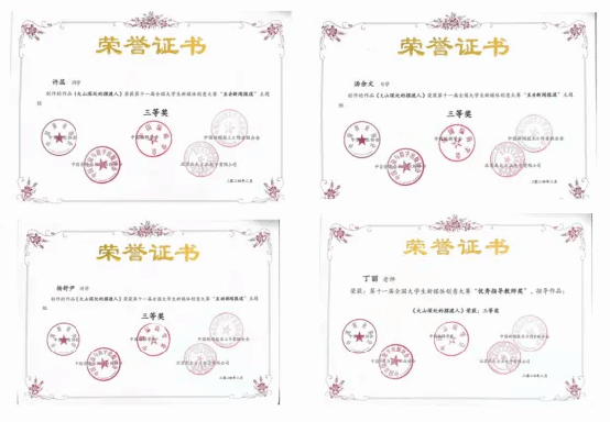 近年来,数字出版专业学生先后参加多项学科专业竞赛,如全国高校数字艺术设计大赛NCDA大赛、全国大学生网络编辑创新大赛、全国大学生新媒体创意大赛、互联网+大赛等,并多次荣获国家级、省级一等奖、二等奖等各类奖项,学生的技术应用能力、设计能力、审美素养、团队合作等多方面的能力和素养,借助各大赛平台,获得了极大提升,“以赛促学”真正落到实处。